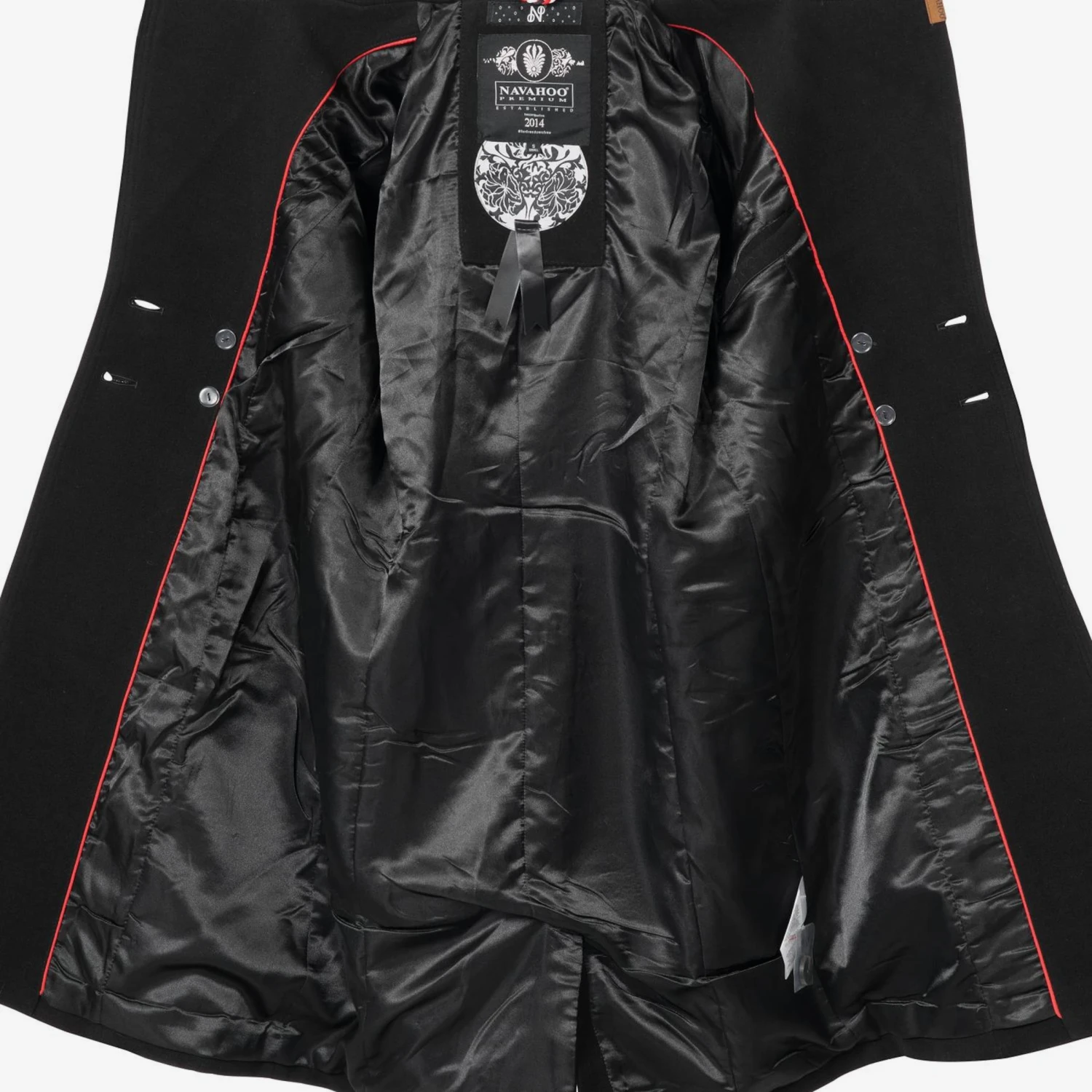 Couleur unieManteau classiqueFenteBoutonnièreCol à reversCoupe cintréePoche intérieurePoches latéralesEtiquette patch / étiquette flagCoutures ton sur tonToucher soyeuxLégèrement doubléFermeture à bouton